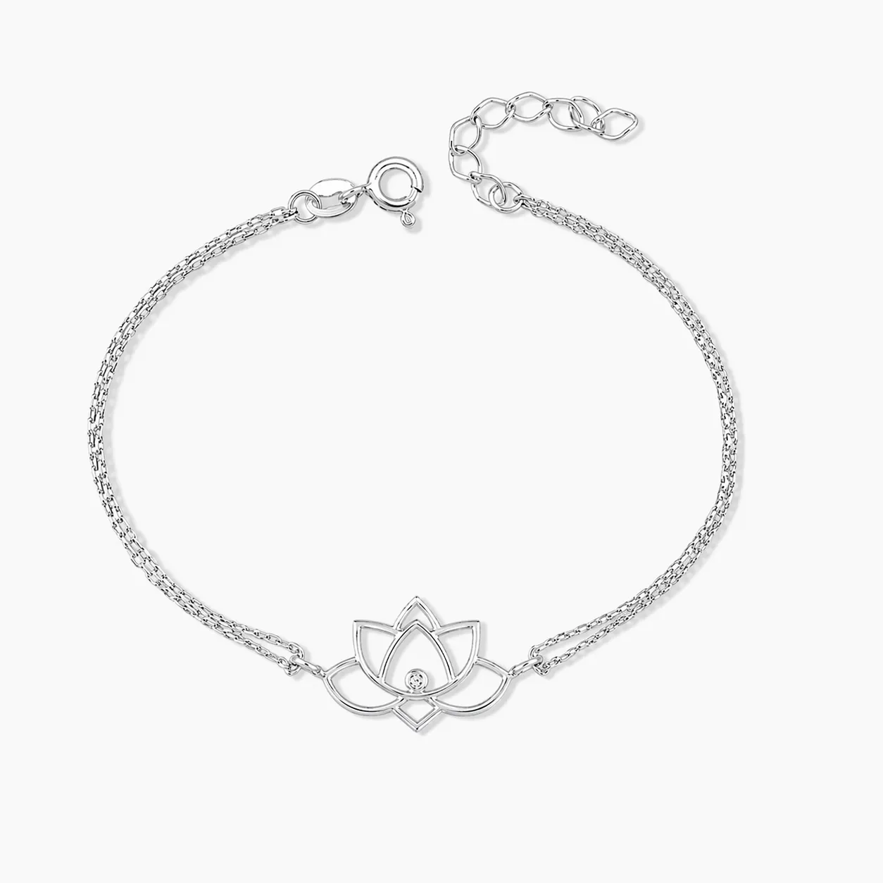 0.01 Karat Pırlanta Gümüş Lotus Çiçeği Bileklik